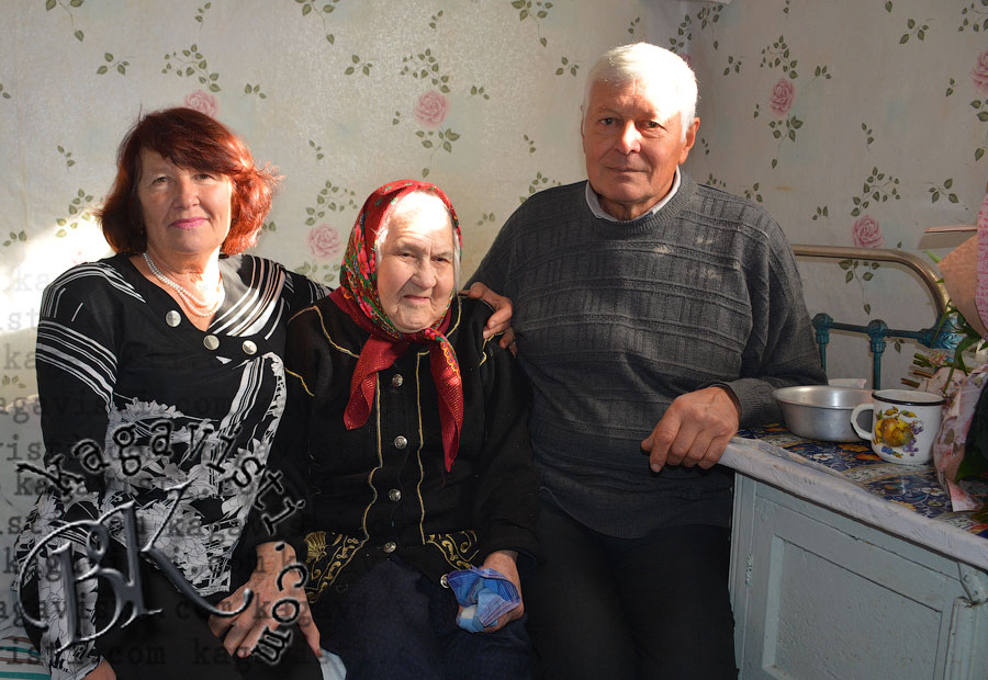 Софія Наумівна народила 3 дітей, двоє з яких вже за вічною межею, має 4 внуків і 5 правнуків! Зараз вона ходить по хаті, виходить на вулицю і разом із зятем Петром співає українських народних пісень (на фото із тим самим зятем і дочкою Галиною).